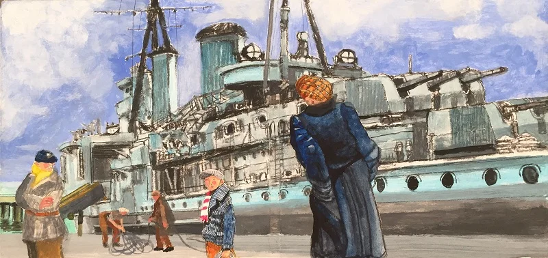 The Dreadnought mixed media 60x32cm Frame 76x48cm £700